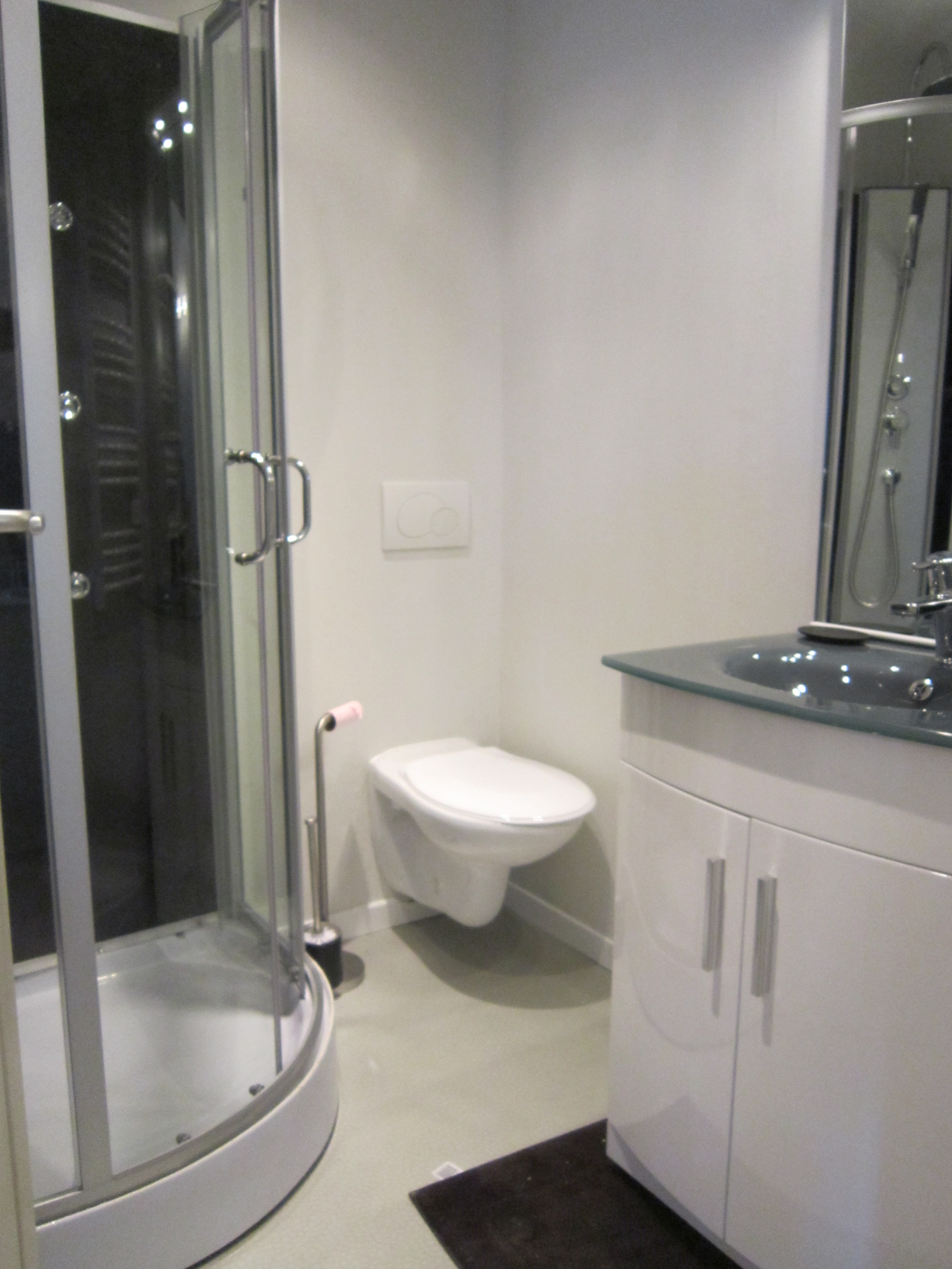 Douche, lavabo, wc.