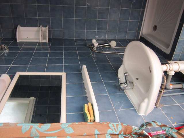 Douche, lavabo et wc séparés